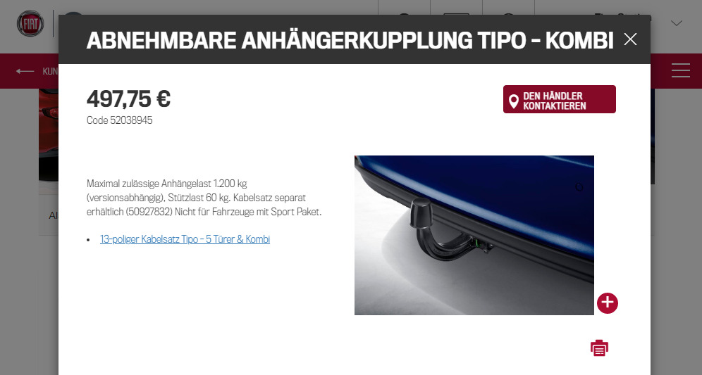 Der Tipo hat offiziell nur 75 KG Stützlast, egal was auf der Ahk steht.