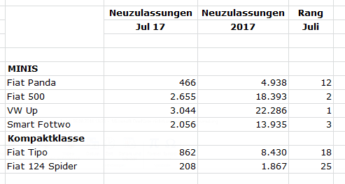 naja...rund 900 Stück...das ist aber wirklich schwach diesen Monat, wenn man bedenkt wie viele Tageszulassungen aktuell dabei sind, allein mein Händler hat 30 Stück im Juli quer über seine Standorte zugelassen. Auf der einen Seite, wird mir bei den Zahlen des 500 und im Vergleich dazu der Tipo bewusst, warum Fiat so sehr darauf setzt. Auf der anderen jedoch, dass Fiat einfach was tun muss. Der Tipo hat seinen Schwung verloren, nicht nur diesen Monat. Mehr Werbung, mehr Ausstattung, mehr Präsenz...dieses Gefühl, dass der Tipo für die Marke wichtig ist, das fehlt. "nur" 12 bis 15.000 Einheiten dieses Jahr, wäre wirklich etwas schwach, so erreicht man keine feste Größe auf dem Markt.
