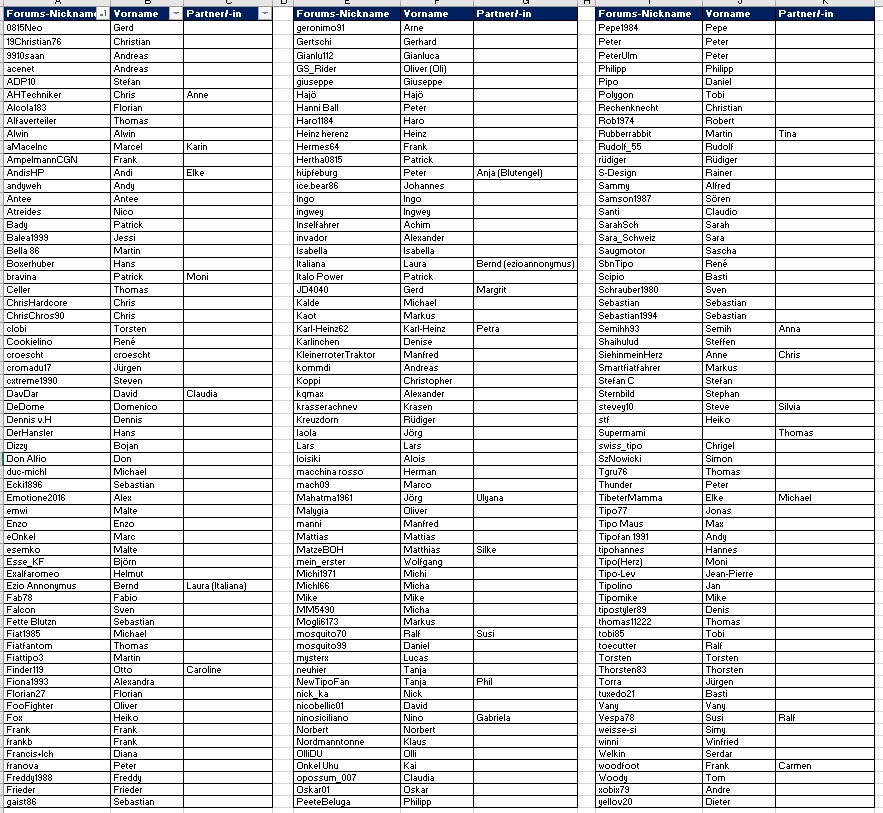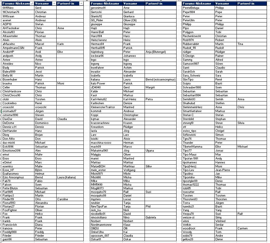 Forums-Nicknamen & reale Vornamen