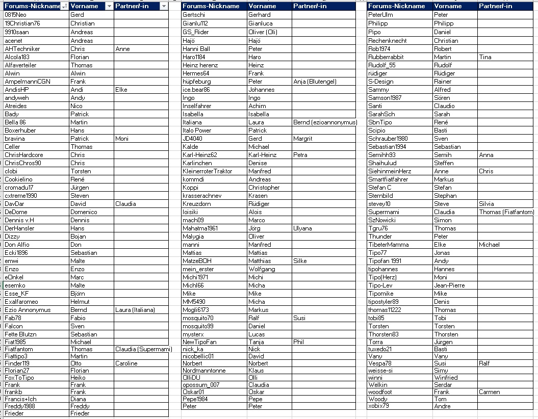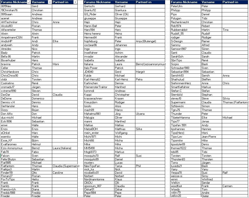 An dieser Stelle möchte ich mich nochmals bei dir bedanken. Deine Liste hat mir mehr als einmal geholfen, da ich mir Namen nicht gleich merken kann.