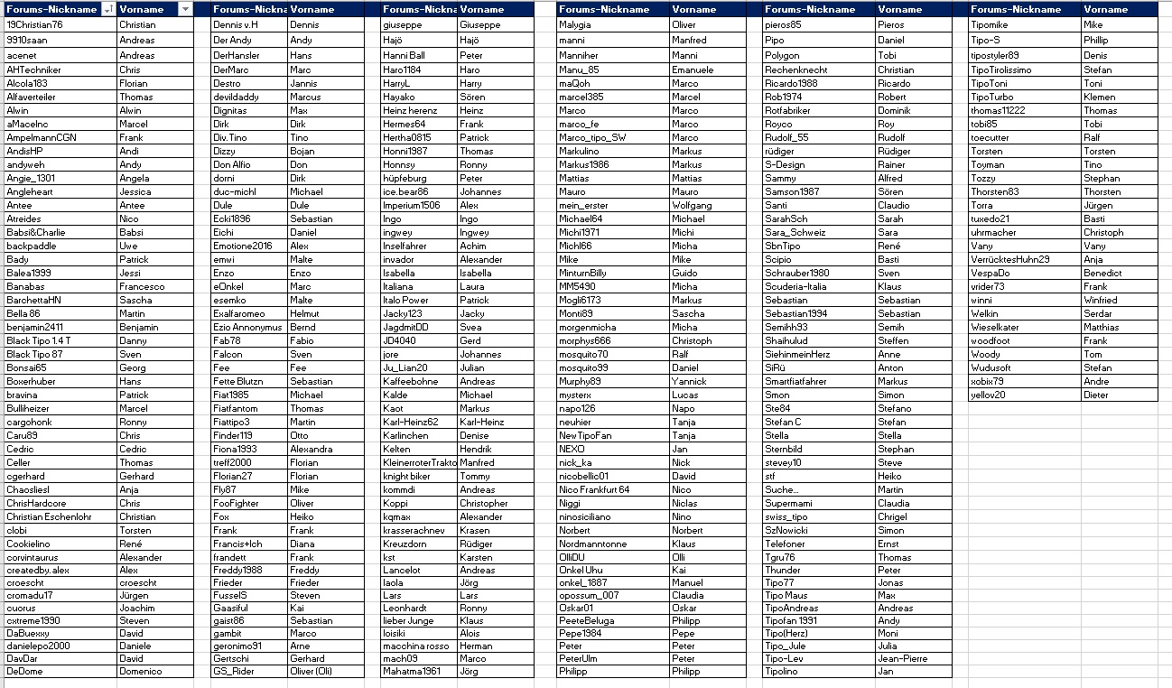 Forums-Nicknamen & reale Vornamen