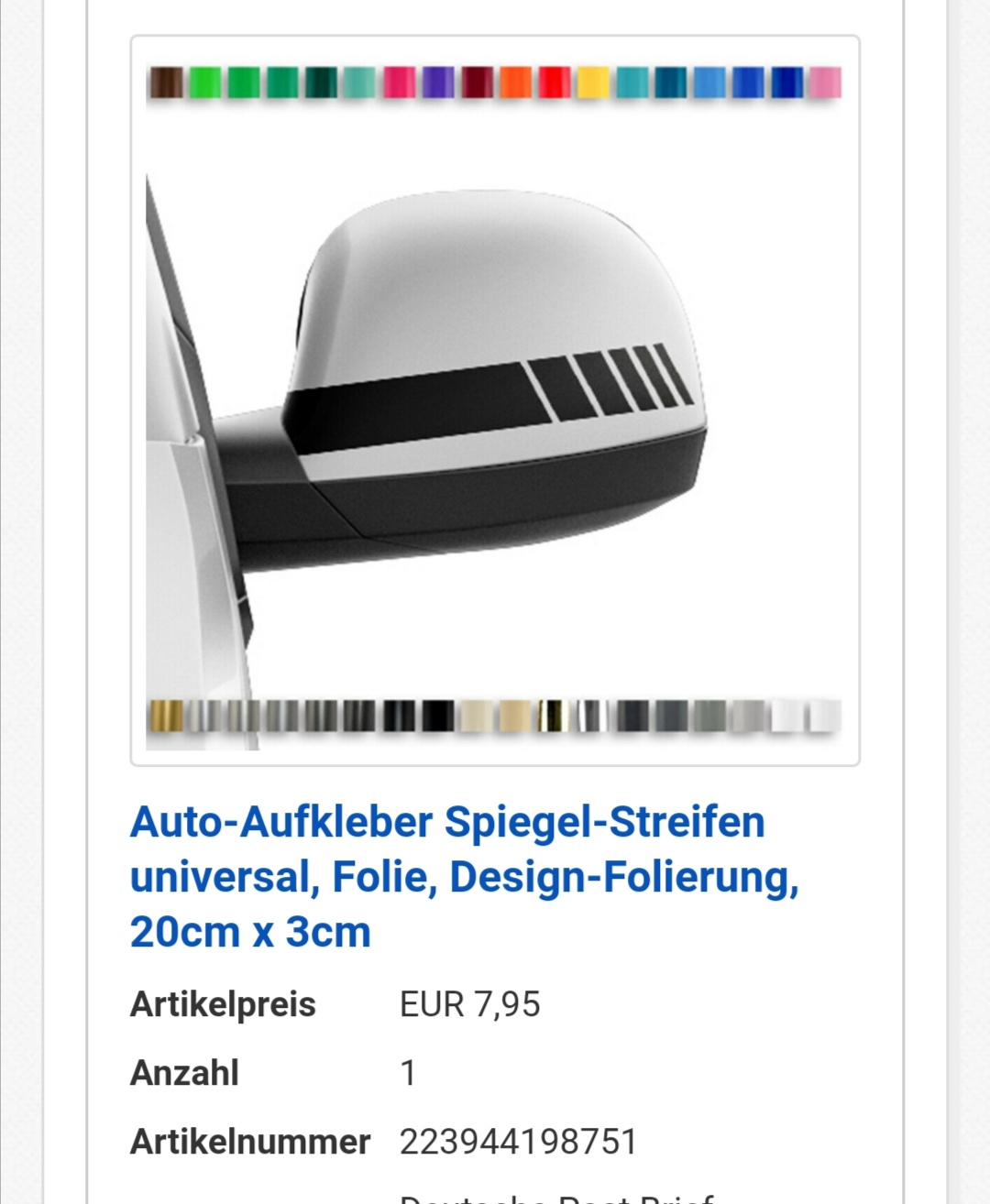 Hab heute endlich die Lieferung für meine Fiona bekommen. Da ich mir momentan keine folierten Außenspiegel leisten kann werden sie derweil mit Racingstreifen beklebt, bei uns fahren 3 Collosseograue HBs herum, hab minderwertigkeitskomplexe wenn sie von vorn aussehen wie Fiona :1f602: