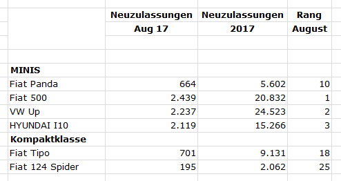 Ich brauche nur die Zulassungen von Panda und 500 hier in D mit denen in Europa zu vergleichen.