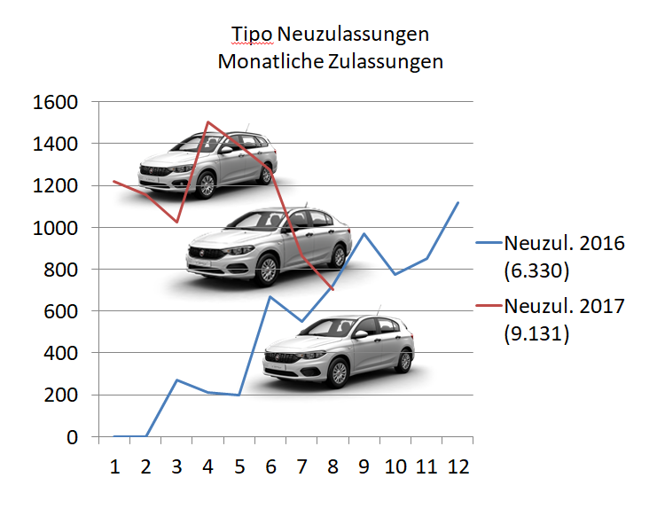 Ohne mediale Präsenz, ohne Marketing versickert der Tipo trotz seinem Potential wieder im unteren Mittelfeld. Dabei ist das völlig unnötig, Fiat ruft sich seine Geister durch die Lethargie selbst!