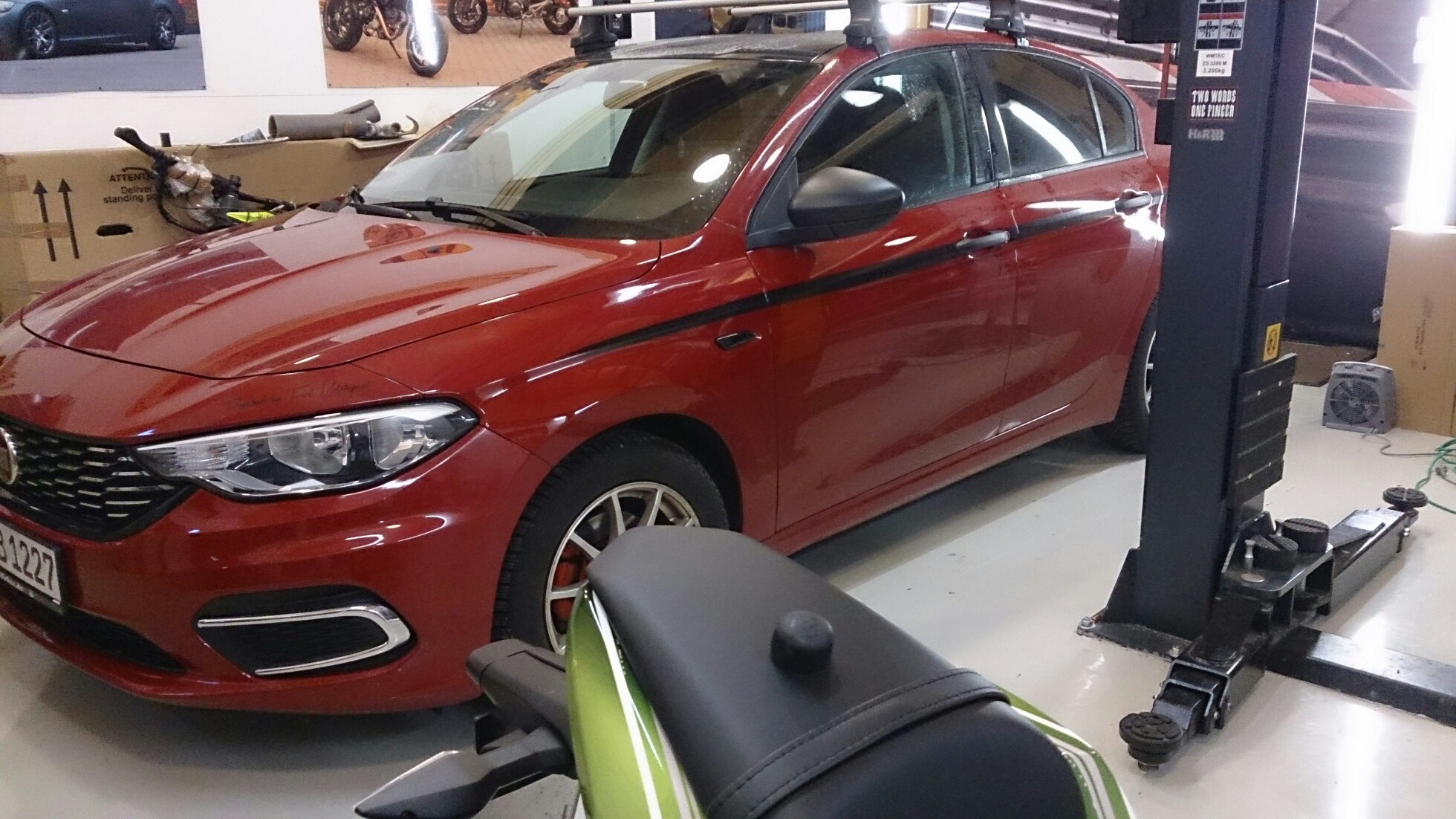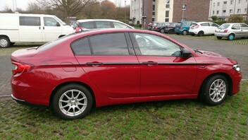 Mein Fiat: Tipo Limousine, Pop, Tech-Paket, 95 PS, Benziner, rot, Vogtlandfedern, Bilsteindämpfer, Dach- und Frontspoilerfolierung, EZ: 6/2016, 130.500 Kilometer; Renault Clio 3, Benziner, blau, 75 PS, EZ: 3/2008, 223.500 km