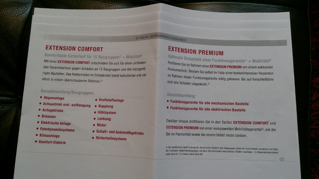Nach den Erfahrungen mit meinem Tipo, werde ich nächstes Jahr kurz vorm Ablauf der Werksgarantie die Anschlussversicherung auf 80.000 erhöhen bzw. wenn möglich auf 5 Jahre. Zudem wenn die Bedinungen nicht passen oder es zu teuer ist, es gibt genug Versicherer, die das aktuell gut und günstig anbieten.