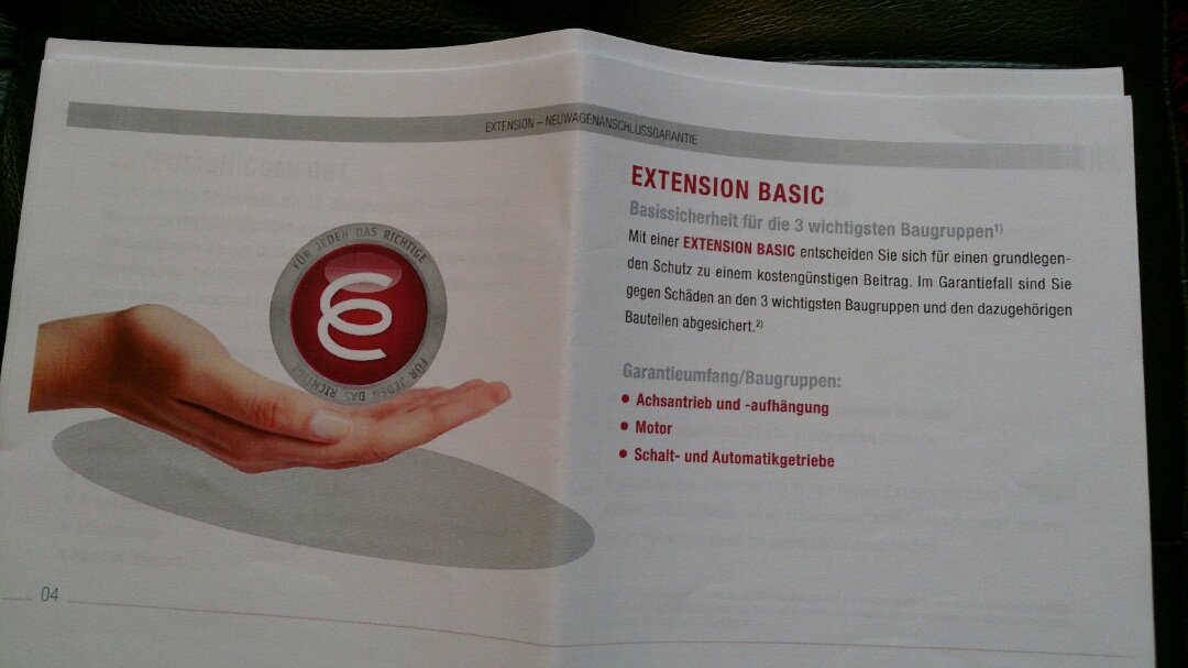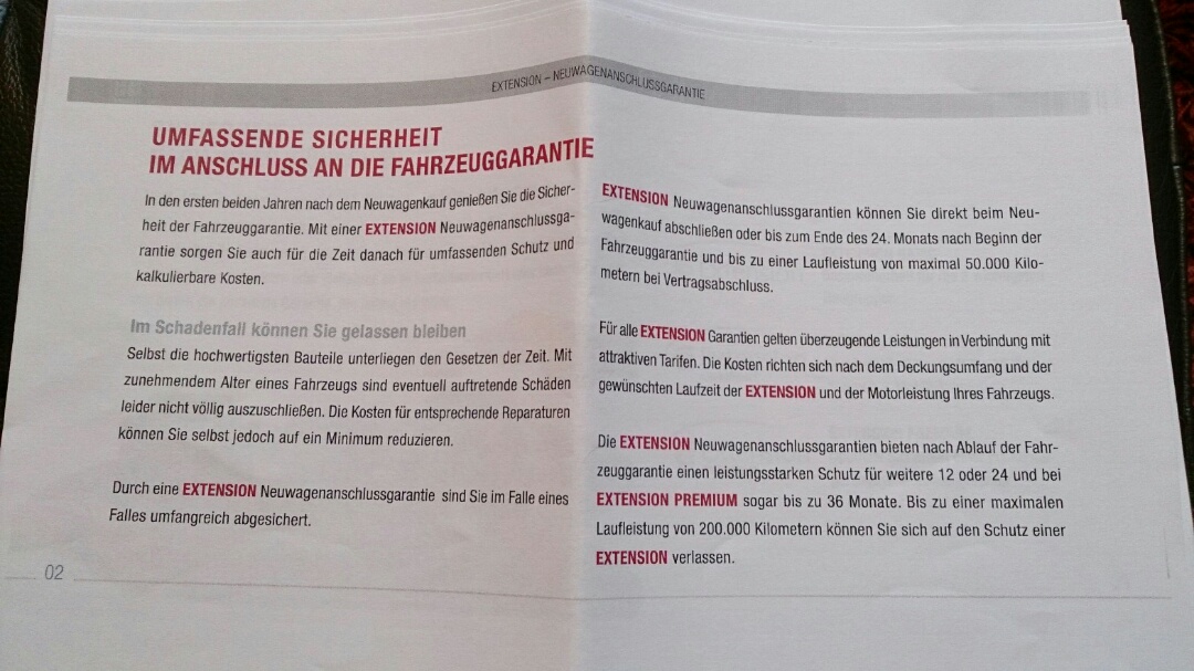 Die NeuwagenAG bei Autokauf. Die Extension-Garantien können im Nachgang noch gekauft werden.