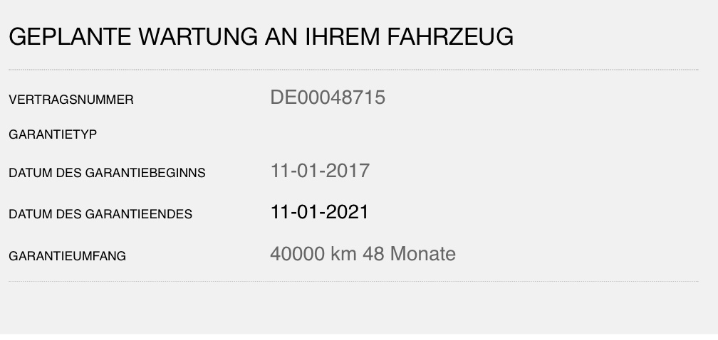 Wieso hast Du diese nicht? Die sind doch fest auf 4 Jahre oder deine Kilometer-Leistung, die Du abgeschlossen hast.