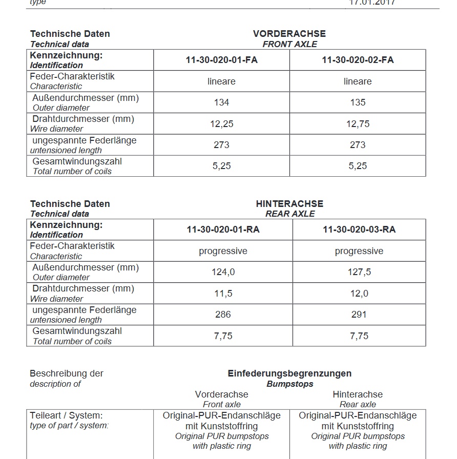 Ja spur und Sturz sind einzustellen damit deine reifen sauber ablaufen, das Gutachtens liegt immer bei den federn bei ansonsten nachfordern bei eibach.lg
