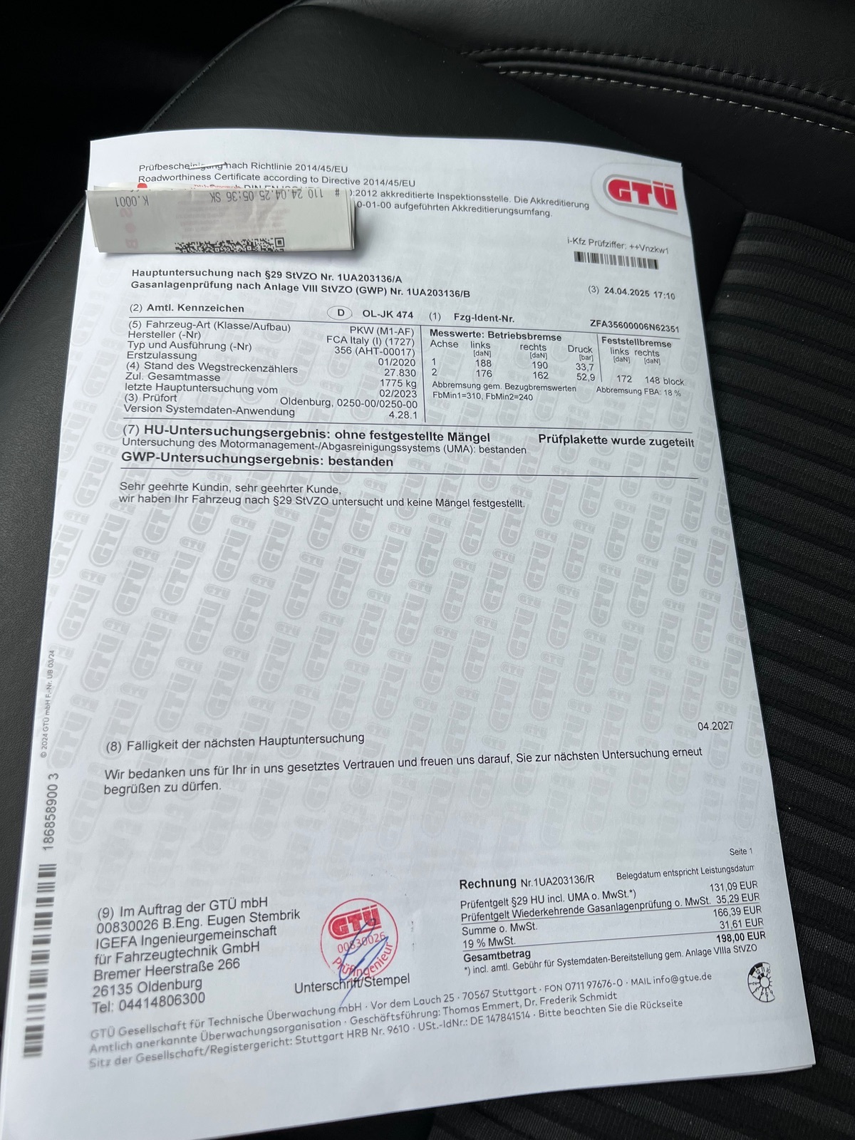 • Heute gab's neuen Tüv bei der DEKRA.