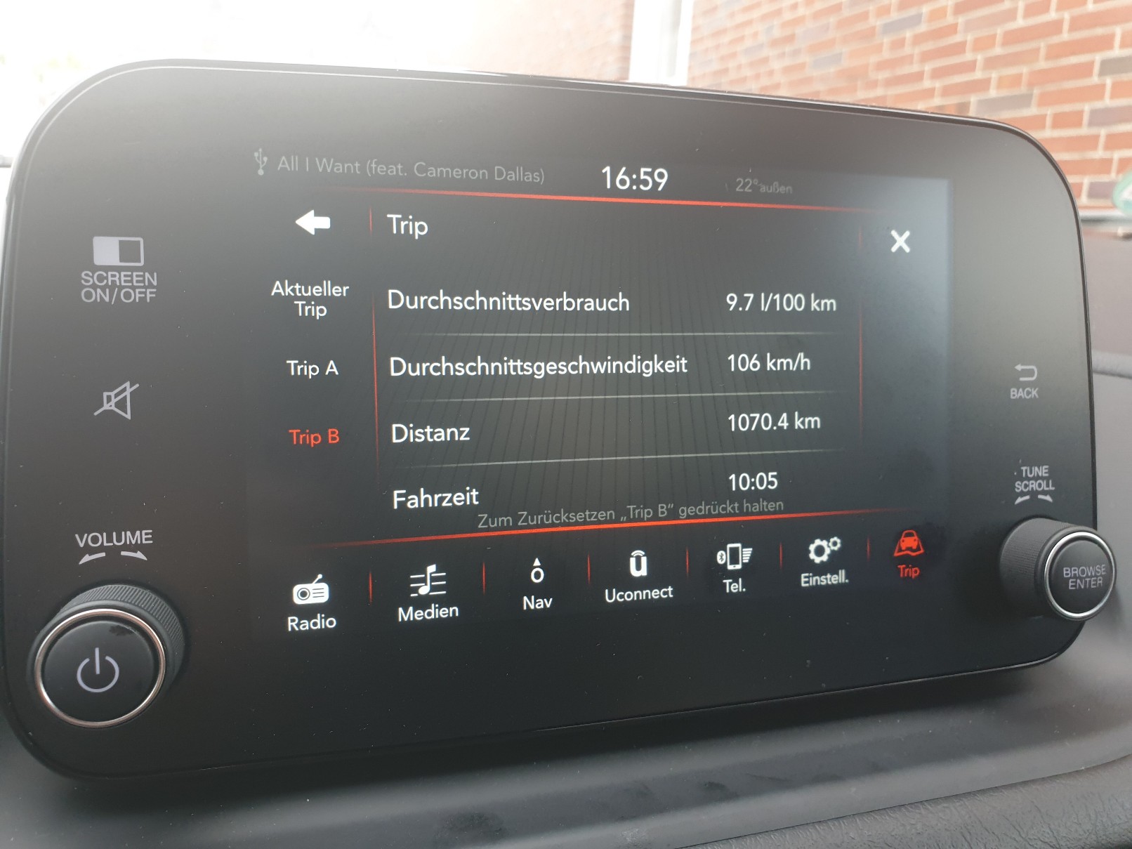 Heute voll gemacht, 44,5 Liter, 507 km auf dem Tripcounter, macht rund 8,8 l, BC sagt 8,1.