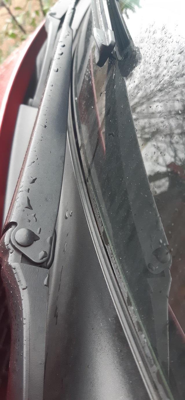 • Ich weiß nicht was Du genau meinst, aber das Wasser läuft unterhalb der Windschutzscheibe auf die schwarze Kunststoffabdeckung und wird dann nach weiter unten befördert, von wo aus es auf die Straße abläuft. Hinter der Scheibe darf natürlich nichts nass sein.