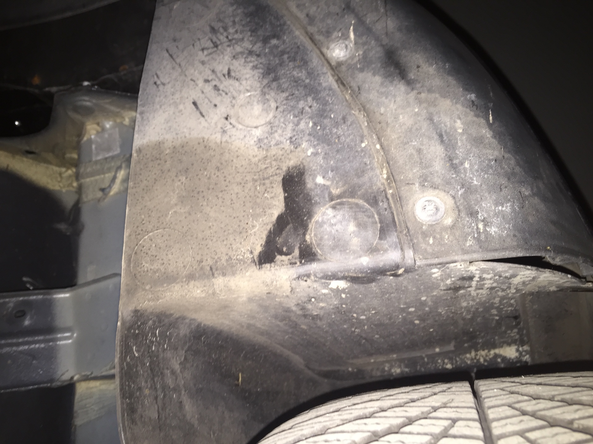 Sieht aus als wäre die innere Radhausschale unten abgerissen. Da fehlt nicht nur einfach eine Klammer.
