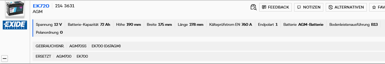 Bei uns, Mercedes, steht da auch nur Starterbatterie. Keine Größenangabe und schon gar kein Hersteller. Du kaufst das Ding bei Mercedes, mit einer Mercedes-Nr. und damit ist es ein Mercedes-Teil. Das die Hersteller die Dinger nicht selber herstellen ist kein Geheimwissen und wer der Hersteller ist interessiert in der Regel nur irgendwelche Forumsmitglieder, egal welcher Marke. Andere Kunden machen da nicht aus jedem Pups eine Wissenschaft und fahren genauso gut und genau so lange.
