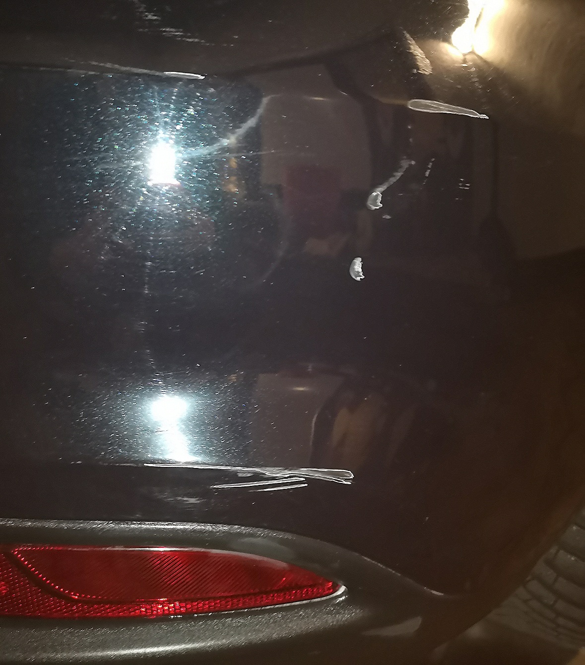 Der Herr hat hinten die ganze Stoßstange ziemlich hingeärmelt trotz Parksensoren...
