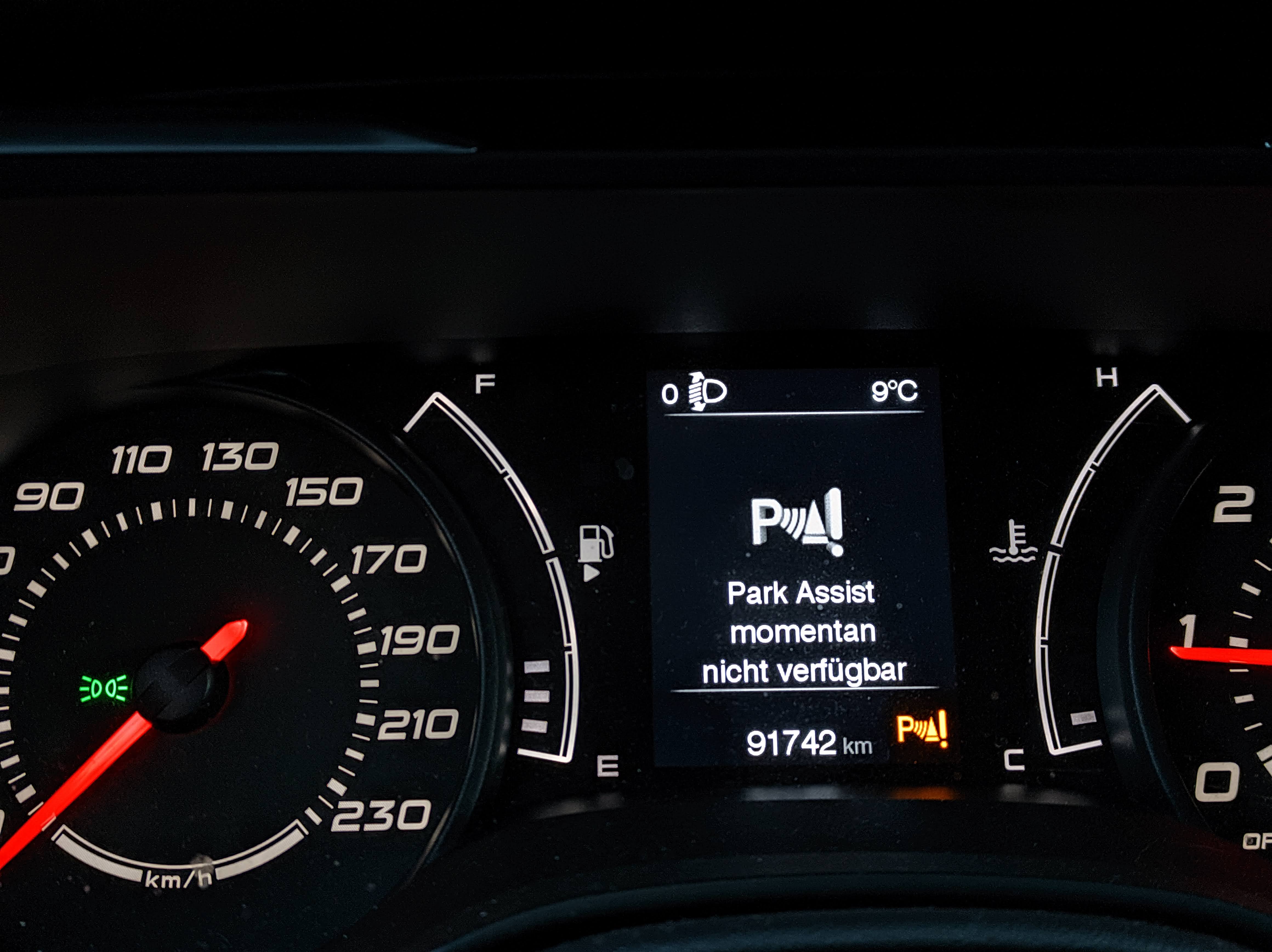 Beim rückwärts Ausparken kam die Meldung "Park Assist nicht verfügbar" in Kombination mit einem Zeichen in Orange.