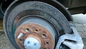 Generell scheint die Scheibe hinten beim Tipo eine Mimose zu sein, hier siehts aus, als würde der Belag nur noch in der unteren Hälfte anliegen und oben würde gar nicht gebremst. Ich habe ja auch Riefen in der Scheibe, als wäre diese nicht 4.000 alt sondern 40.000!