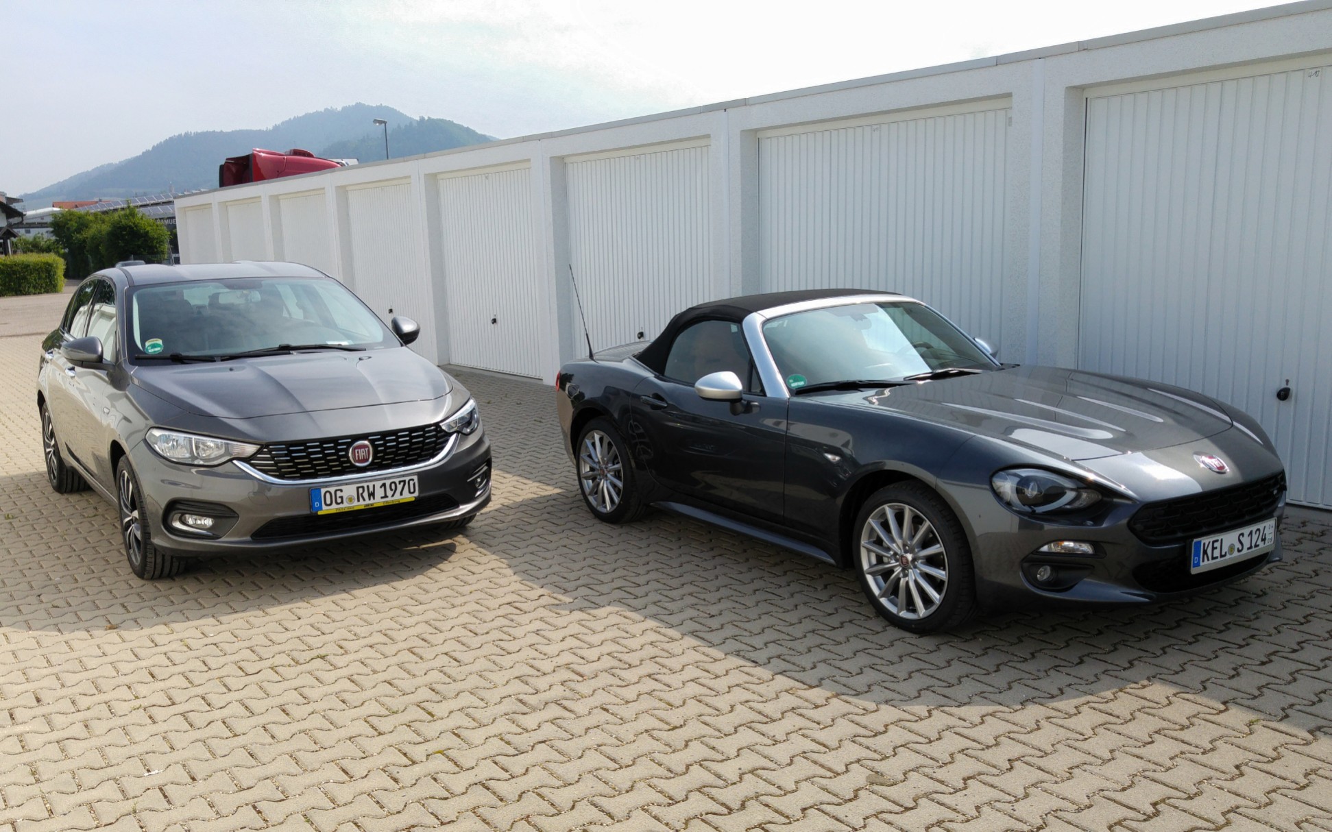 Mein Fiat: Tipo Limousine, Pop, Tech-Paket, 95 PS, Benziner, rot, Vogtlandfedern, Bilsteindämpfer, Dach- und Frontspoilerfolierung, EZ: 6/2016, 130.500 Kilometer; Renault Clio 3, Benziner, blau, 75 PS, EZ: 3/2008, 223.500 km
