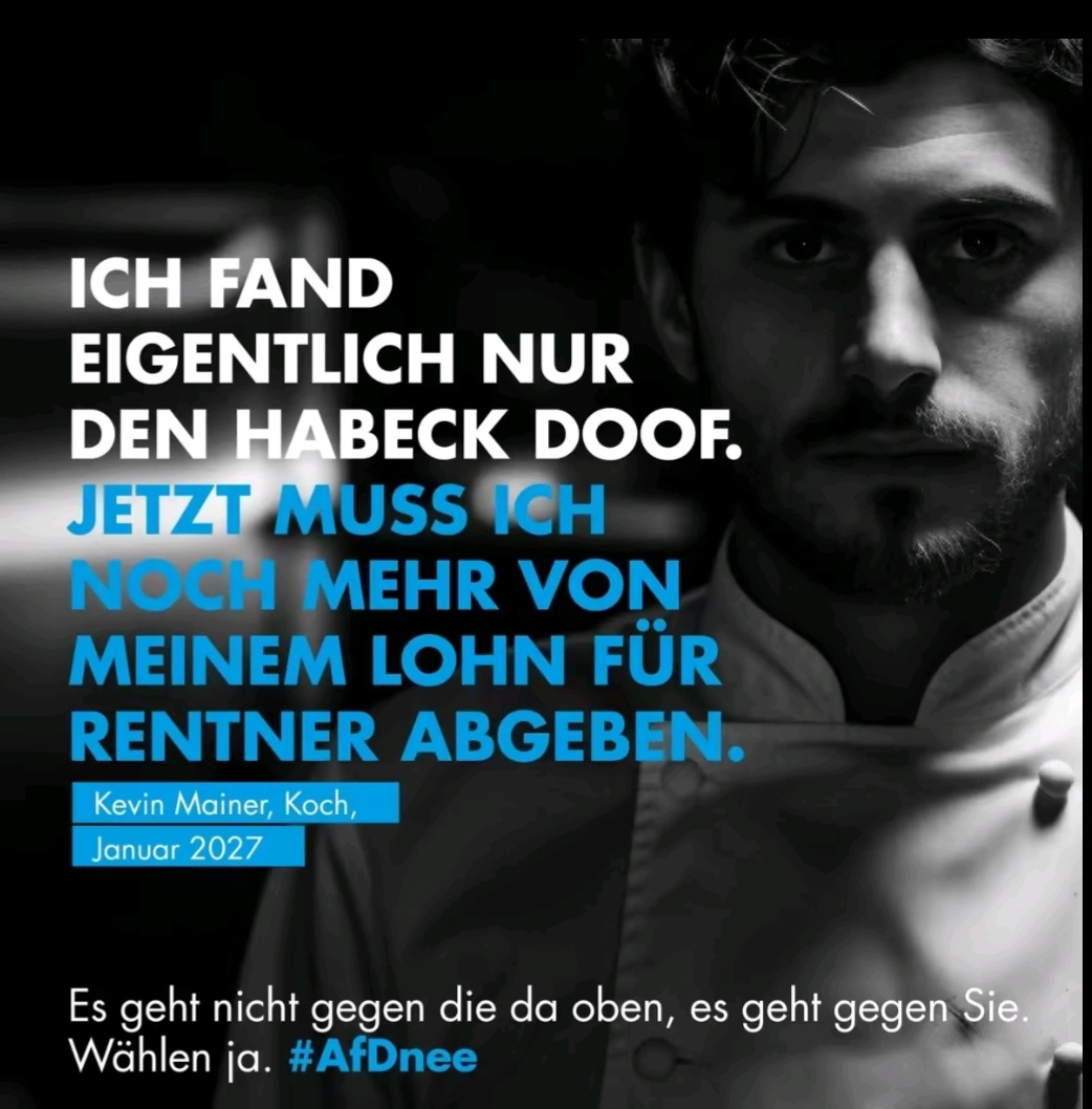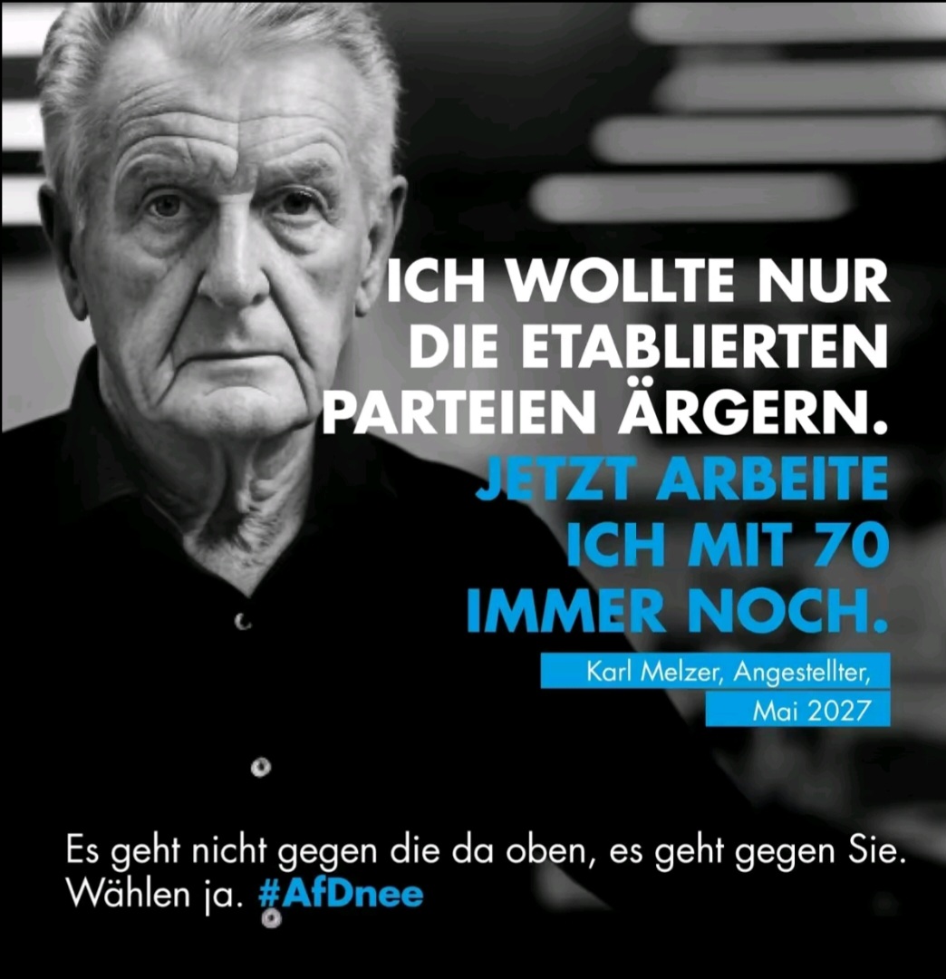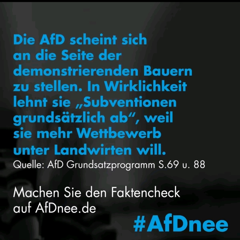 Das selbe eben bei der AFD, komm mir nachher keiner mit Trecker oder auch ohne und mecker weil z.B. Subventionen abgebaut oder Sozialleistungen gekürzt werden.