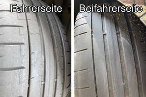 Wobei ich da auch etwas "komisches" habe, der Reifen auf der Beifahrerseite ist an den Verschleißmakierungen, der auf der Fahrerseite hat da noch 1-2 mm Gummi....Reifen sind auf beiden Seiten aber absolut gleichmäßig abgefahren.