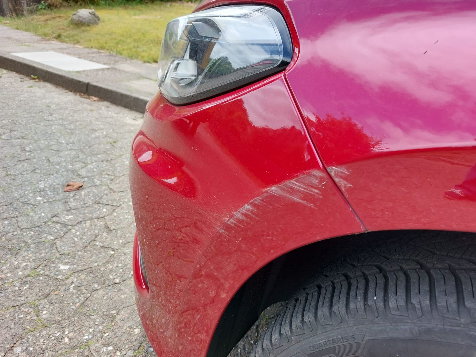 • Nee, alles gut; neuer Spiegel + Stoßstange und Kotflügel lackieren, Auto stand geparkt vorm Büro am Straßenrand.