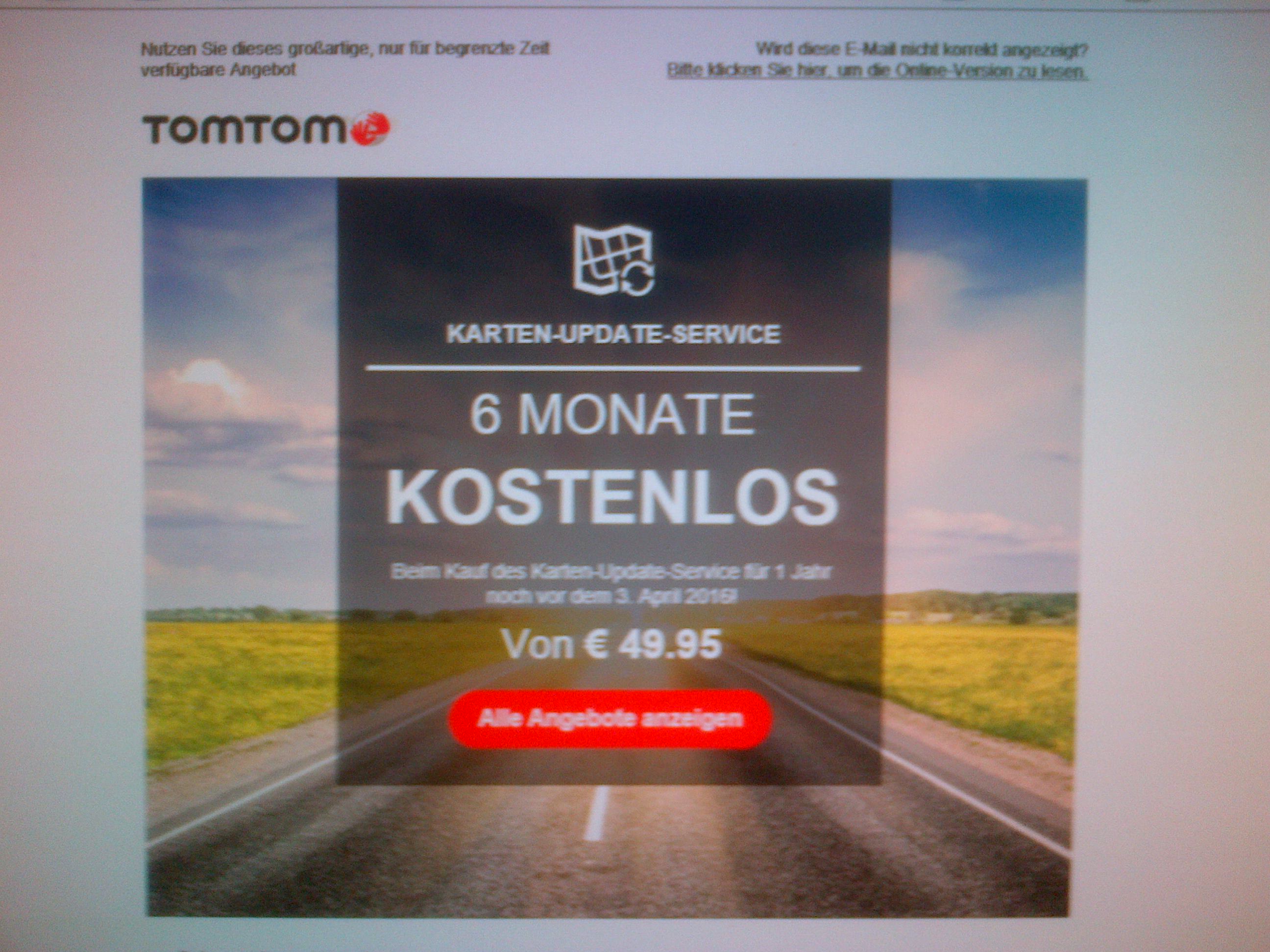 Oh welche Freude, habe heute in meiner mail box wieder ein Angebot von Tomtom erhalten.