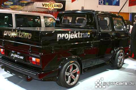 • Kennt noch jemand die Firma "Projekt Zwo"? Die bauten vor allem T3 in Rennkisten um. Der normale Carrera-Motor mit ~300PS passte da ohne großen Umbau rein.
