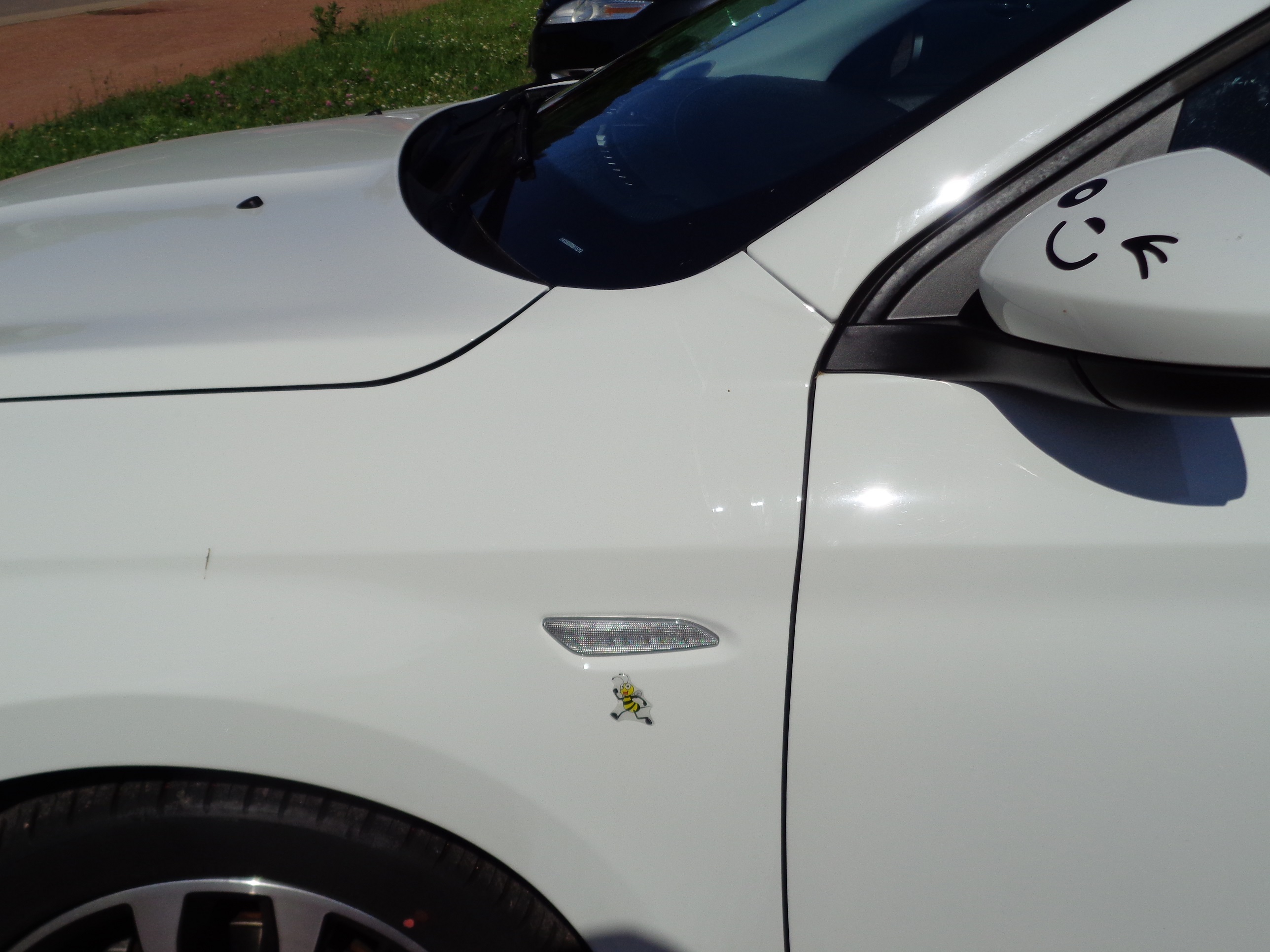 Kontra? Nö... ok ich finde die Grinsebacken-Spiegelkappen schon anders, und das Bienchen ähm passt zu den Grinsebacken-Spiegelkappen