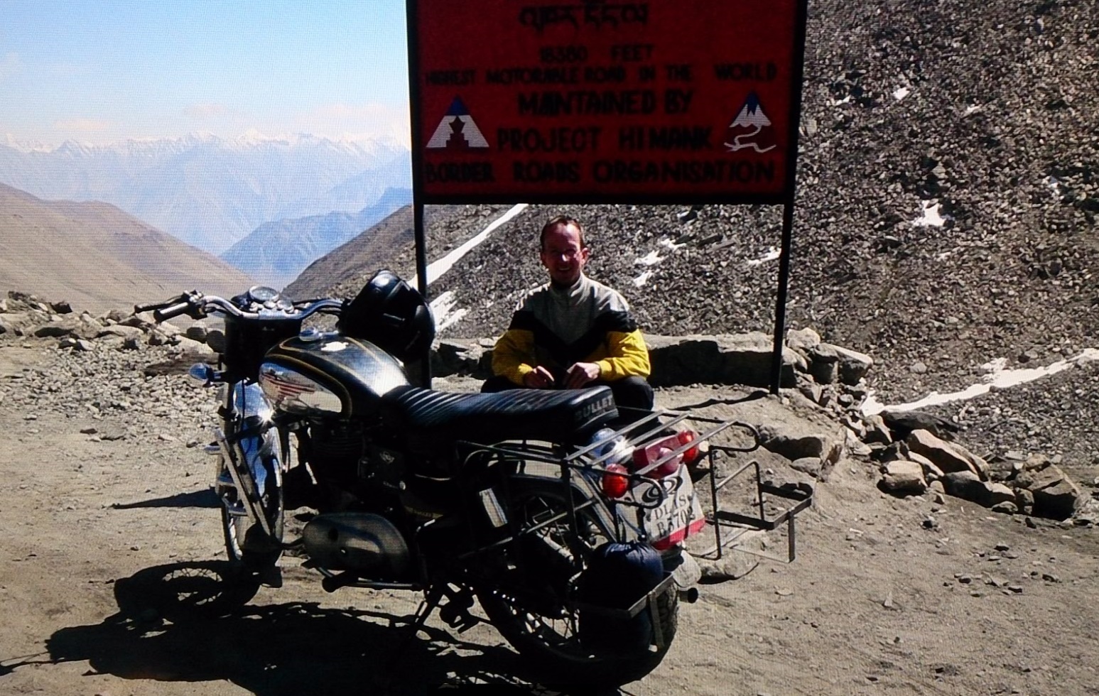 So, ich auch mal. Schon etwas älter, aufgenommen am höchsten befahrbaren Pass der Welt: Khardung La, Nähe Leh in Indien, > 5.350 Meter (Die Schilder auf dem Khardung La sowie Karten geben die Passhöhe mit 5602 m an. Unabhängige Messungen mit GPS und analogen Geräten verschiedener Reisender zeigen indes an, dass die wahre Passhöhe bei etwa 5359 m liegt. Zu einem ähnlichen Wert von 5350 m kommt man auch durch Analyse der SRTM-Daten.; Quelle; wikipedia)