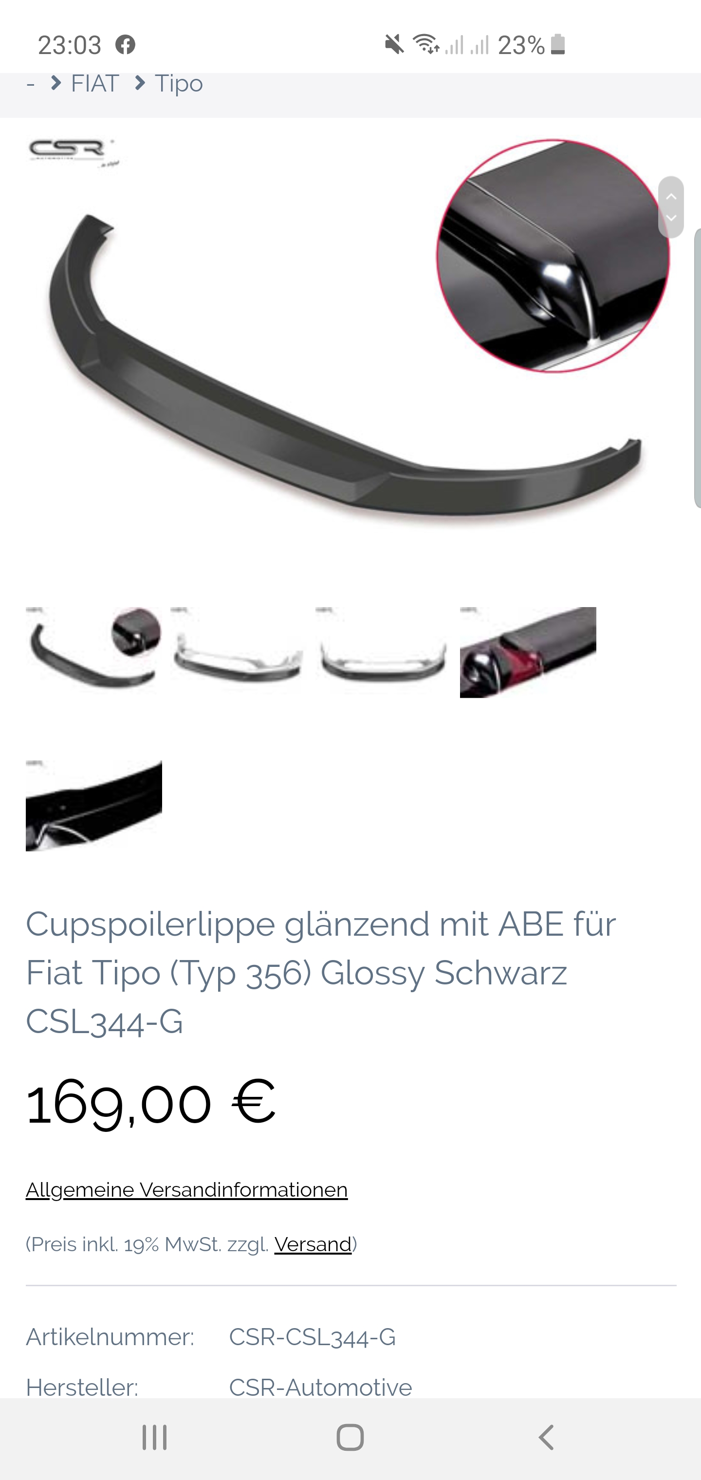 hast du jetzt den genommen Cupspoilerlippe aus ABS mit ABE für Fiat Tipo (Typ 356) CSL344-L, weil es gibt CSL344 mit groben Strukturen und den CSL 344-G mit ganz feinen Strukturen und Schwarz.