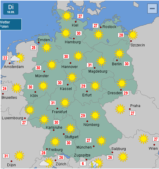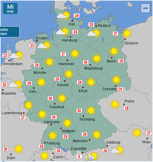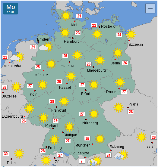 Die 30 Grad haben wir hier in Frankfurt nicht ganz geschaft(29 Grad). Morgen wird es aber 32 Grad hier!!