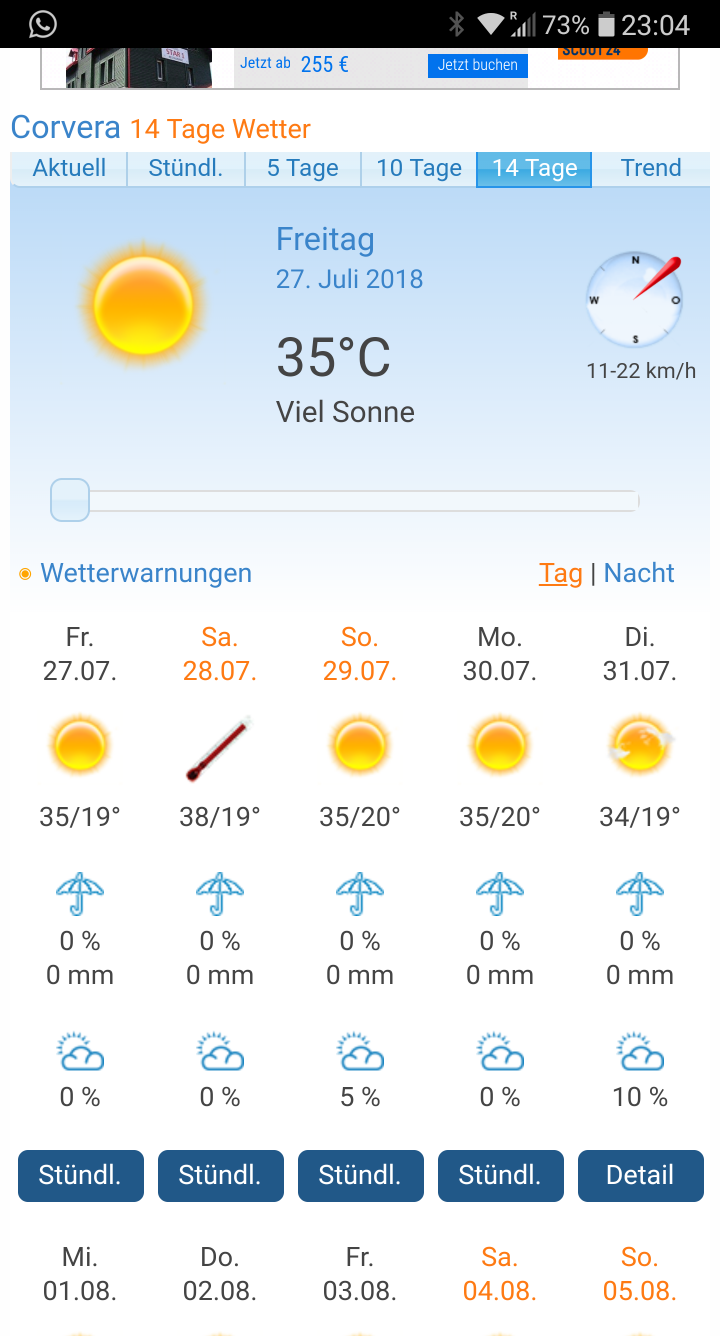 PS: Vor einer Stunde waren es laut Thermometer auch noch 31°. Jetzt ist es deutlich kühler mit 24°...