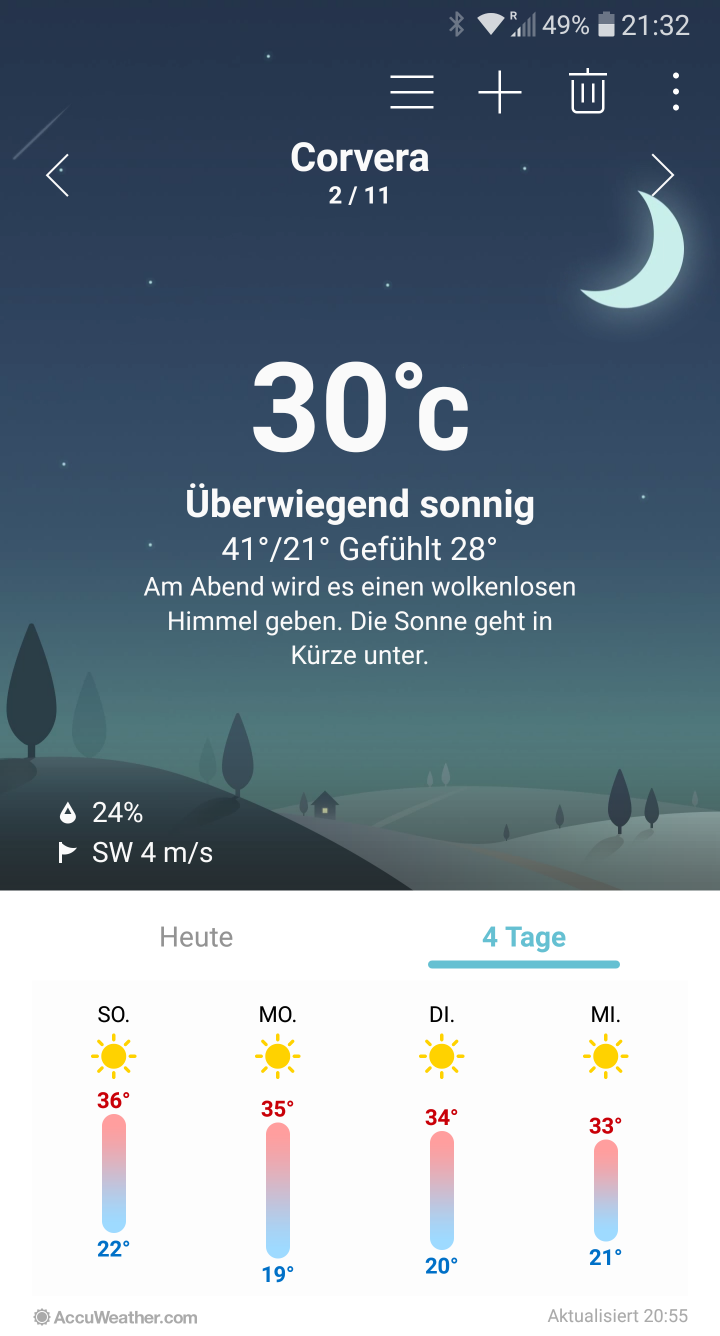 Morgen soll es dann wieder wärmer werden, aber "nur" bis knapp 30 Grad. Ab Dienstag dann wieder Schmorbraten, jeah…