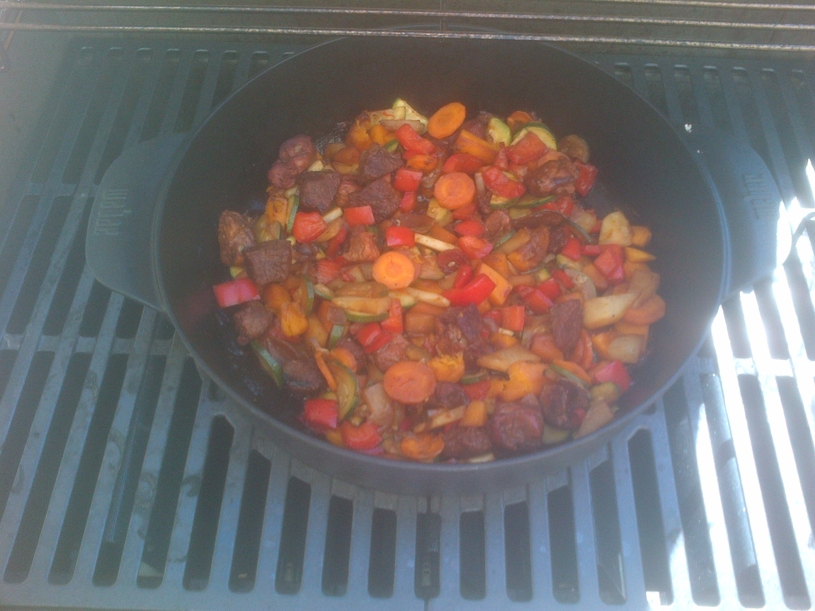 Wenn bei Hitze Fleisch, dann nur Gulasch mit viel buntem Paprika... ohne Kohlenhydrate, also ohne Kartoffeln, Nudeln oder Reis.