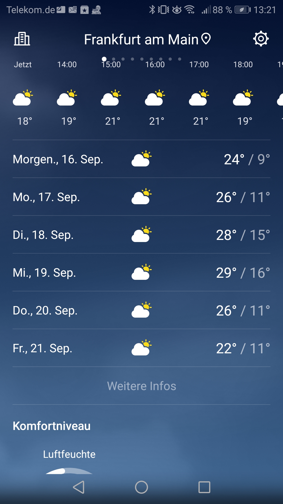 Wir haben jetzt schon gemütliche 24°, heute soll der wärmste Tag in dieser Woche werden ![]()