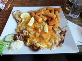• Nino wo bitte siehst Du da ein Schnitzel......ich sehe da nur eine undefinierbare Masse.... :D :D :D