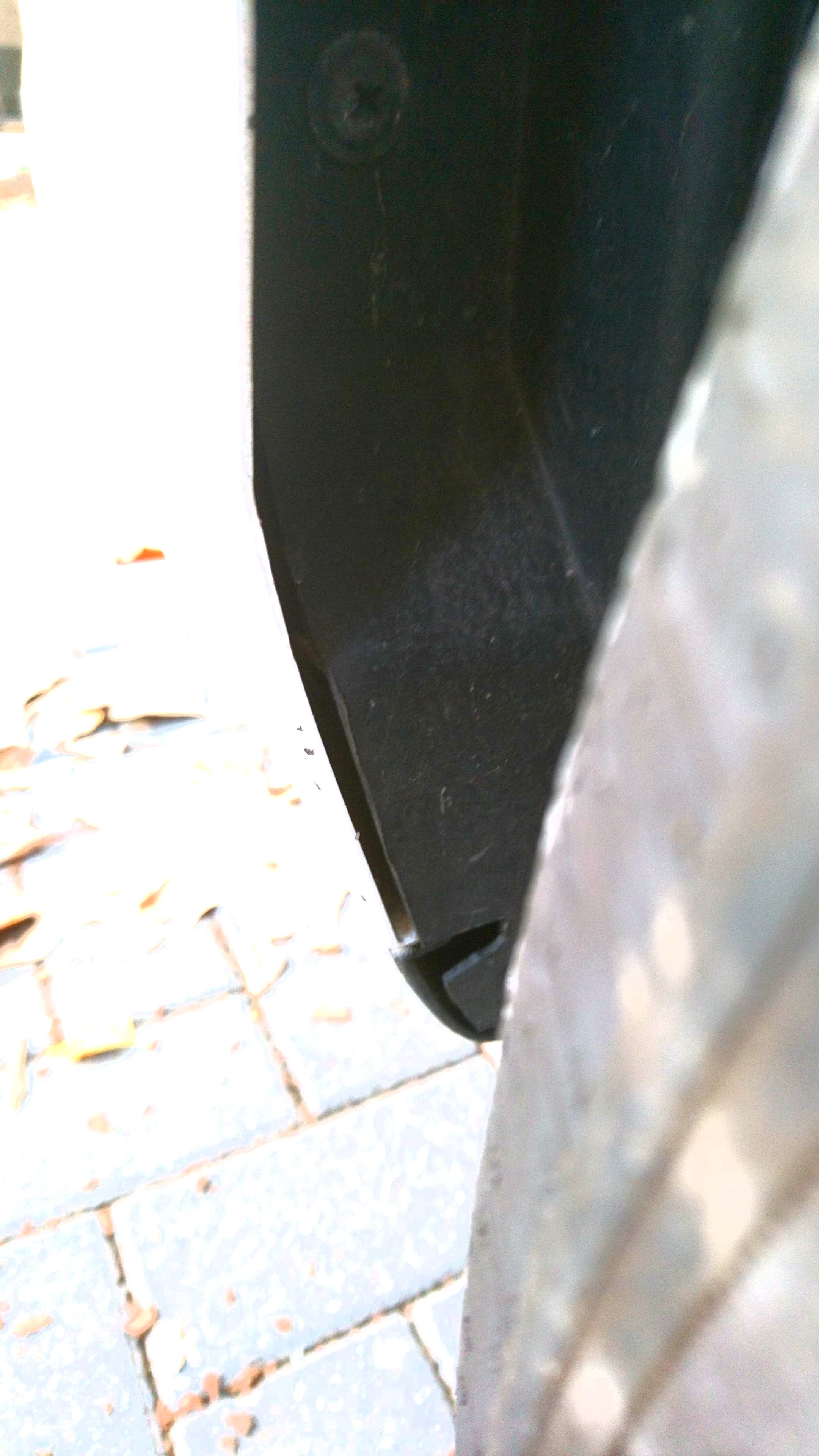 Aber auch toll, hab das Auto nicht Mal ne Woche, und da hat so ein Spinner seine Pedale vom Fahrrad in den rechten hinteren Radkasten vom Auto gefeuert