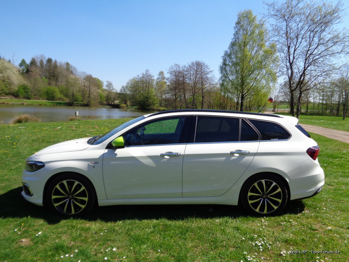Mein Fiat: 1,4l-120PS-Benziner als Kombi Lounge in GelatoWeiß mit diversen Paketen u.a. Popowärmer und 17" Alu´s, genannt "TurBienchen"