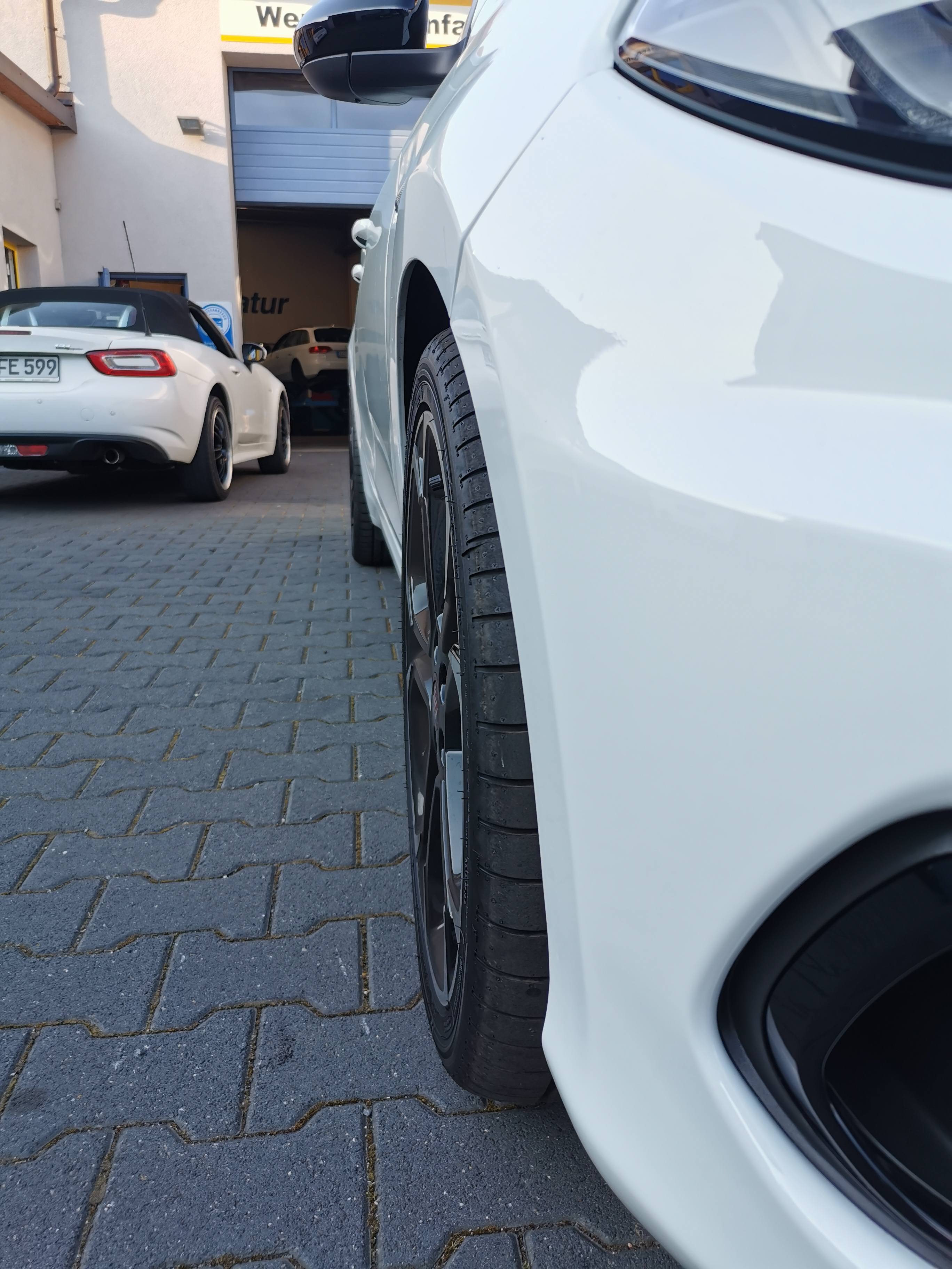 Sieht doch gut aus, ich bin am überlegen 15mm rundum zu machen auf den 18 Zoll. Aber muß noch nach schwarzen Schrauben schauen