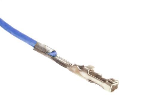 Das ist ein gecrimptes Kabel, wie man es beispielsweise mit dem entsprechendem Kontakt von unten in den Sicherungskasten steckt (die Abbildung zeigt jedoch nicht den korrekten Kontakt für den Sicherungskasten. Ich habe aber gerade kein anderes Foto):