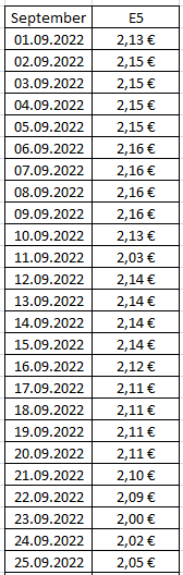 E10 aktuell zwischen 180,9 Cent - 190,9 Cent.