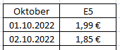 Gestern um 15:30 Uhr lag der Preis bei 1,86 € für E5!