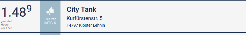 Hab gerade bei Star in Glindow getankt.1,60.9 der Liter Super.Aber ich bin ja ADAC -Mitglied und da gibt es wirklich noch einen Cent Rabatt.Waren glatte 42 Cent.Bin immer noch ganz aufgeregt bei so viel Ersparnis.