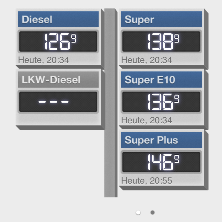 • Habe heute für 1,32€ getankt.