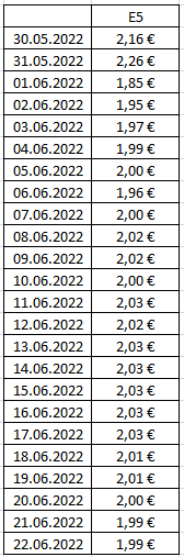 Heute 19:27 E10 getankt: 1,769€, leider nur 16,13 Liter bis voll!