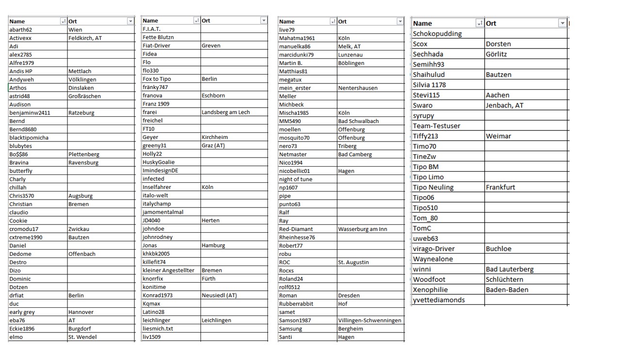 Oben in der Karte und unten in der Tabelle seht Ihr, welche Infos ich bisher habe (Rechtschreibfehler bitte entschuldigen, sofern vorhanden). Wäre klasse wenn mir die anderen Mitglieder Ihren Wohnort mitteilen würden:
