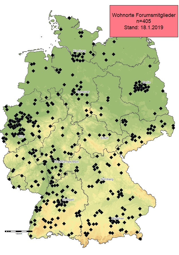 Es ist schon phänomenal, wie sich dieses Forum seit 2016 gefüllt hat. Und die Mitgliederkarte stellt ja auch "nur" zwei Drittel dar, denn allein für Deutschland habe ich ca. 550 Forumsnamen vermerkt - aber eben nicht von allen den Wohnort - plus die Länder Östereich, Schweiz, Polen, Spanien, Türkei, Dänemark, Bulgarien, Slowakei, Lichtenstein, etc. Insgesamt sind es 620 Namen, die mir vorliegen.Schaut Euch gerne nochmal die erste Seite hier im Thread an - eine wahrlich jungfräuliche Karte.