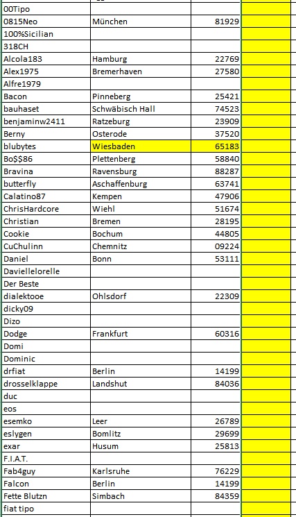Wo mir noch so manche Infos zur Karosserieform (und auch tlws. zu Wohnorten) der deutschen Mitglieder fehlen.