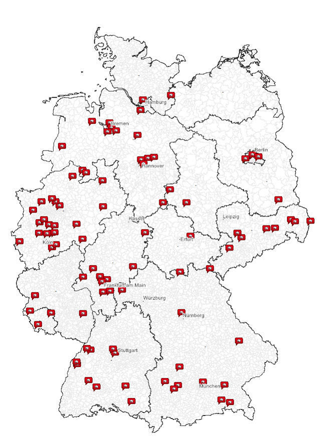 So, bevor es bald wieder eine Mitgliederkarte gibt anbei eine Übersicht, welche Orte mit PLZ ich habe von den deutschen Forumsmitgliedern. Achtung, wenn jemand z.B. nur Köln als Wohnort angibt, dann suche ich mir eine x-beliebige PLZ in Köln raus. Bei der Angabe Niederbayern habe ich Straubing genommen. Wer keine exakten Angaben in seinem Profil macht, muss damit leben.