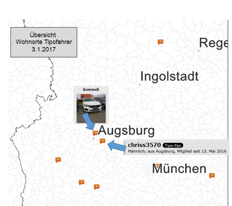 ...ich glaub ich bin vielleicht einfach zu doof...aber wenn ich oben auf Mitgliederkarte klicke und dann Augsburg heranzoome, steht da eben unter der roten Markierung für Augsburg nur chris3570...